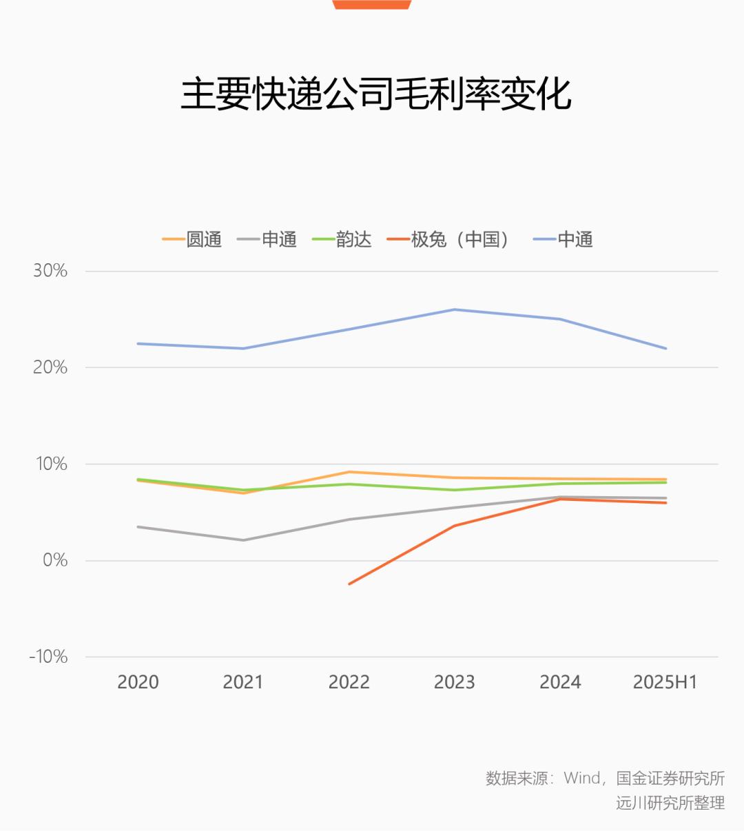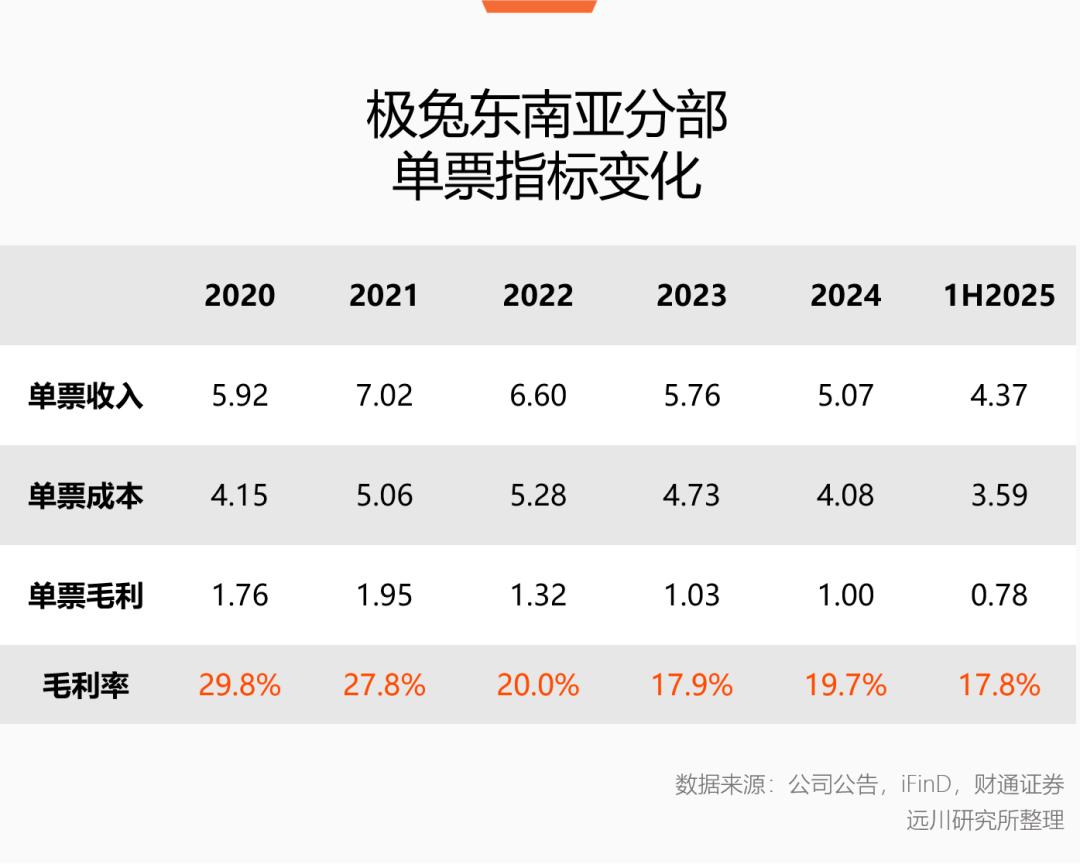 快递行业祖传的价格大战终究还是到来了。2020年至2025年上半年,极兔东南亚单票收入从5.92元降至 4.37元,毛利率也从29.8%逐渐降低到了17%-20%区间[4]。