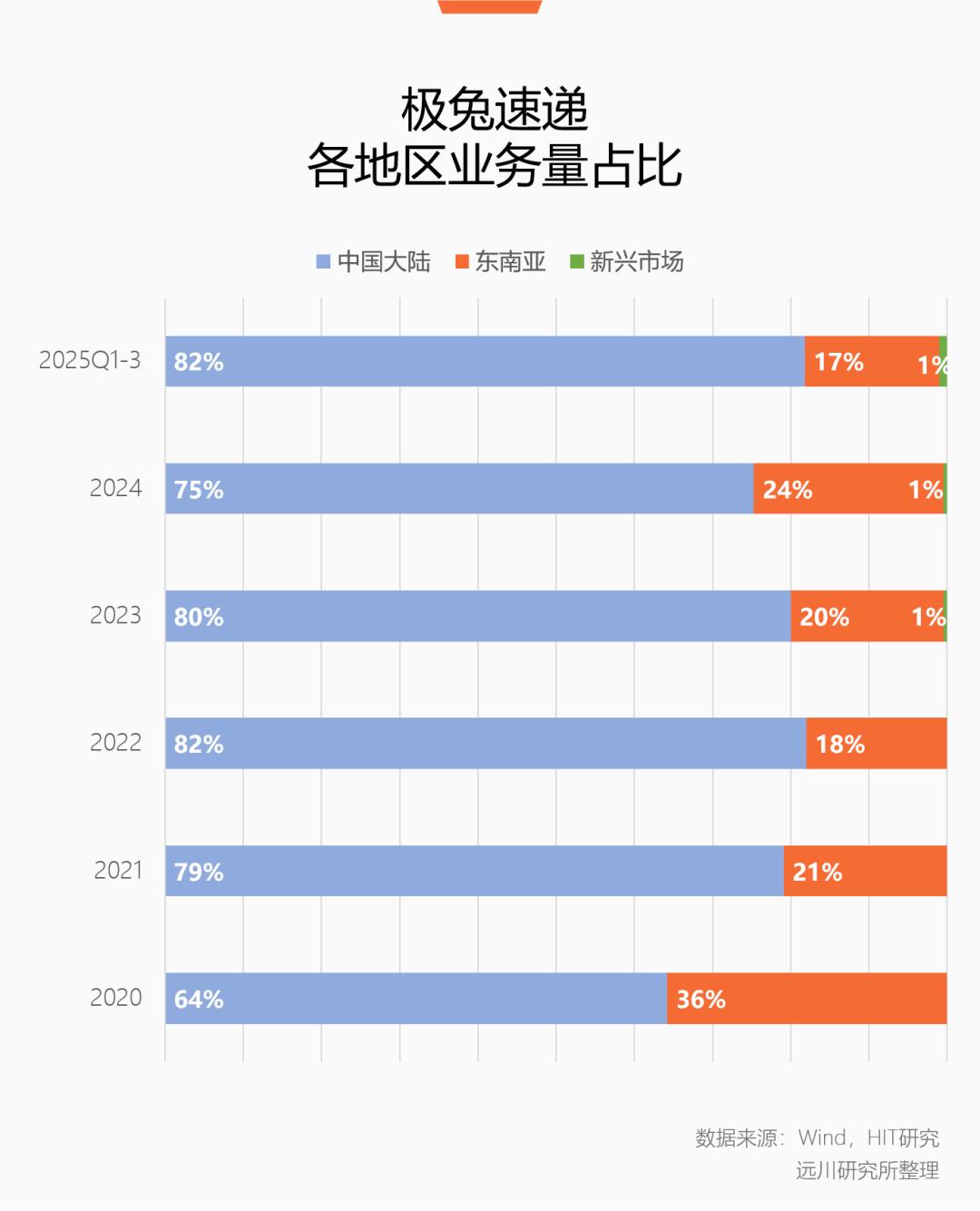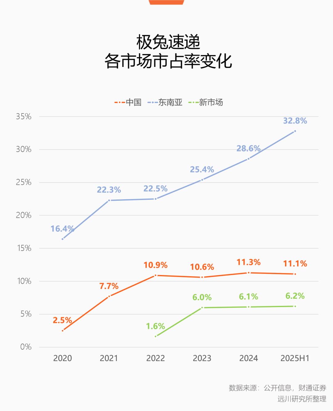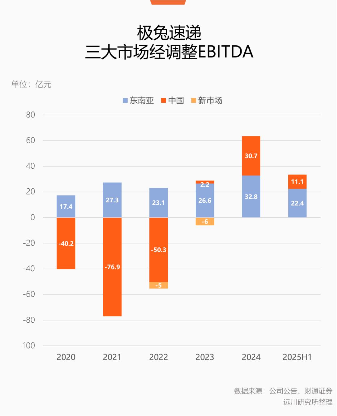 也正是有东南亚市场的输血,让极兔扛过了国内市场的洪水滔天。以价换量抢占市场份额后,极兔在中国地区的利润已于2024年开始转正。