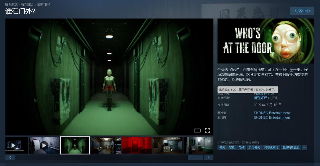 再换个场景,到了《谁在门外》里,你的视角变成了精神病人,要观察是否出现了幻觉并按规则服药。依然是循环+解谜,但《谁在门外》没有死板地套公式,而是提炼了《8号出口》的醍醐味儿,放到了一套完全不同的框架上,依然很有用。