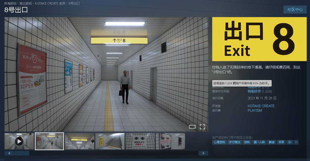 但因为氛围实在是既真实沉浸且瘆人,玩法又简单却新鲜,《8号出口》还是卖出了200万份,在网络上传播甚广。后来被改编成同名电影后,片子还在日本拿下了51.5亿日元(约合2.3亿元)的票房成绩,进了年度票房前十。