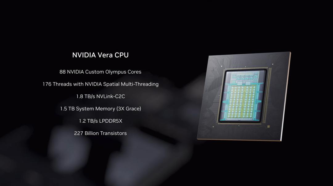 (2) Vera CPU:这是英伟达基于Arm架构深度自研的怪兽。