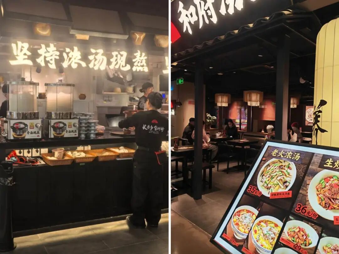 和府捞面的副牌几乎没有在市场激起太大水花,比如火锅、小酒馆,小排档、拉面、咖啡、拌饭等,不过内参君发现,和府捞面旗下子品牌和府汤面在上海有两家新店,人均30-40元,主打“浓汤现熬和浇头现炒”,实际上该品牌在一年前就已经出现且主打“面+牛排”,而由于牛排品类的加入,客单相对较高,一度达到人均近50元,而今向着刚需和性价比完成了一次转型。
