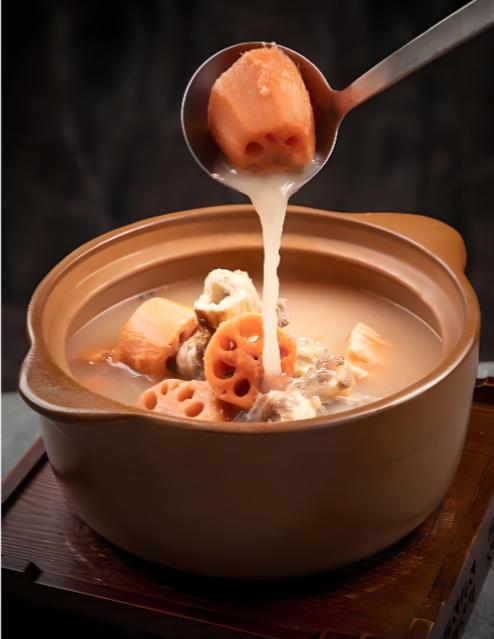 排骨藕汤,当仁不让成了潜力爆款。来菜餐馆里,有一条很有湖北风味的标语:“每年卖出的藕汤可摆满 30 座黄鹤楼”。
