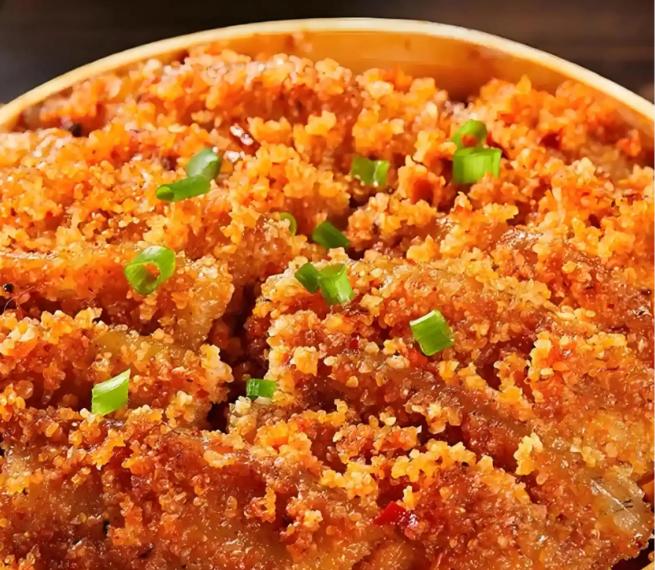 一个藕汤还不行,多少有点势单力薄,老板还加了两个第二梯队,一个是荆楚脆藕煎鲈鱼,另一个是 沔阳粉蒸肉。这两个菜在网友推荐中占了多数,虽然在湖北本地人看来有点奇怪,因为能吊打这两个菜的,多了去了。比如武昌鱼也不错,咋没入席?难道是东湖长江里的鱼不够多?