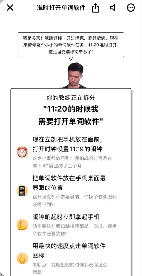 但 PlanCoach 更能整活一点,在这里,你甚至可以看到吴京叫你去背单词……