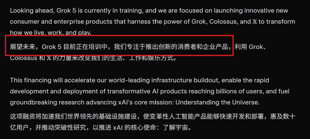 于是随着最新一轮融资落定,有关“Grok 5将在今年一季度推出”的传闻又开始甚嚣尘上。