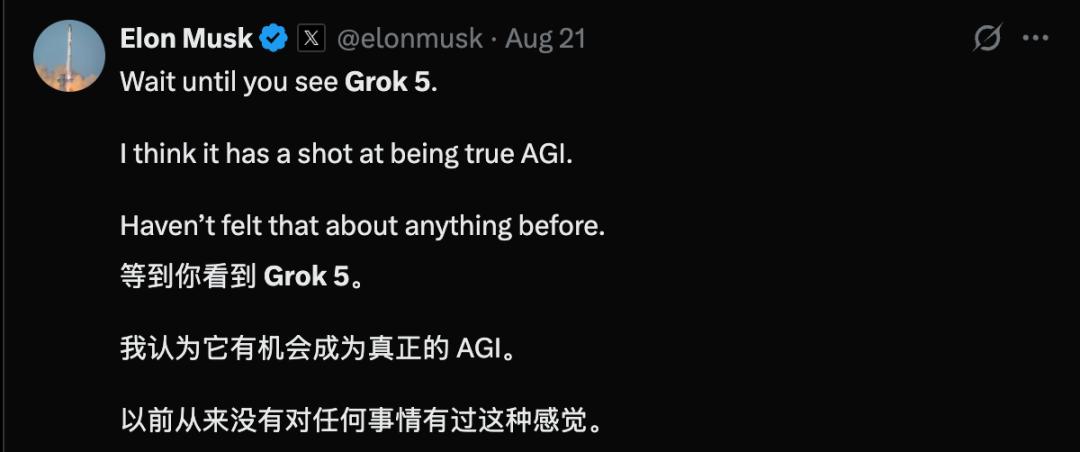 而且还首次给出了一个时间表,称Grok 5将在2025年底推出。