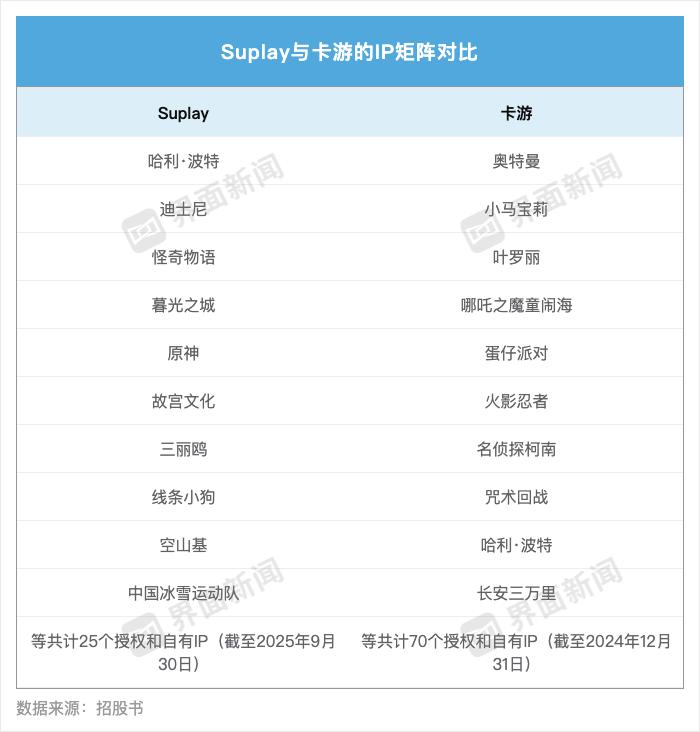 Suplay与卡游的IP矩阵对比 图表制作:界面新闻 马越