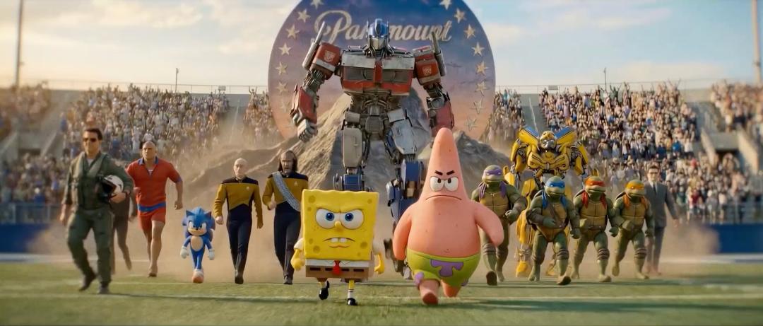 一大帮IP角色踏上战场,派拉蒙的海绵宝宝和变形金刚打头阵,忍者神龟全体斧钺钩叉,旁边站着教父。