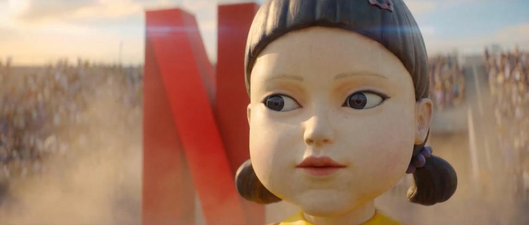它精准还原了《鱿鱼游戏》巨型娃娃的攻击扫描效果,把派拉蒙经典IP角色全部笼罩在激光射线之下;