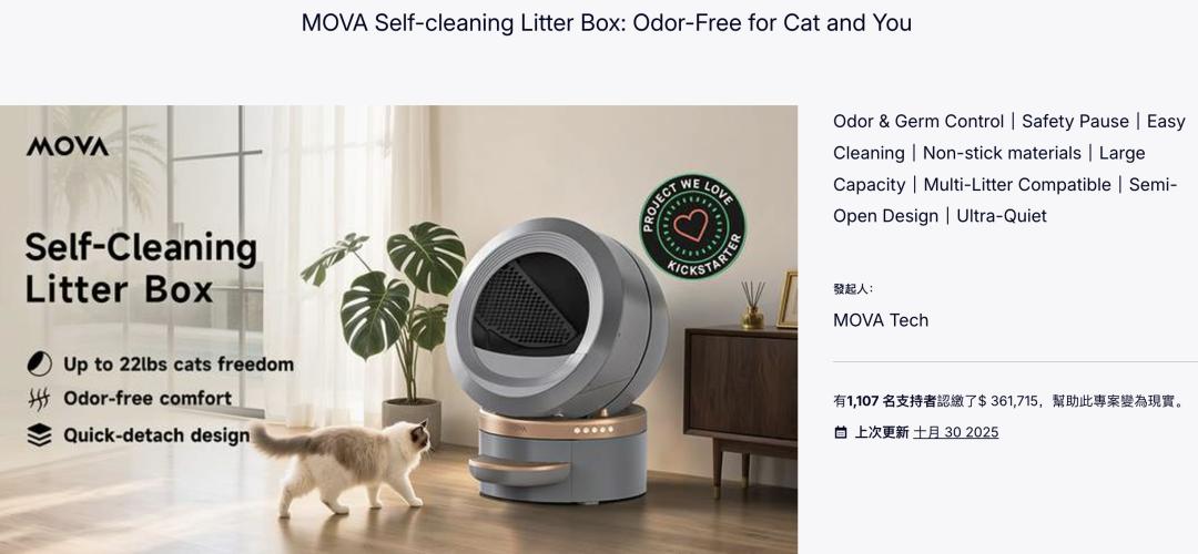MOVA 把这种扩张定义为家庭“全域健康管理”理念的一环。比如这次展出的宠物智能产品,Kickstarter 上线45天筹集超过36万美元的 LB10 Prime 智能猫砂盆,是通过双仓除臭模块和健康数据监测,把对“人”的关怀延伸至家庭里的“毛孩子”。