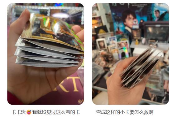 卡卡沃的品控问题同样是一大隐患。社交平台上有大量关于卡卡沃“弯卡”的吐槽,虽有人指出这是PET材质厚卡的通病,但它确实严重影响收藏体验。