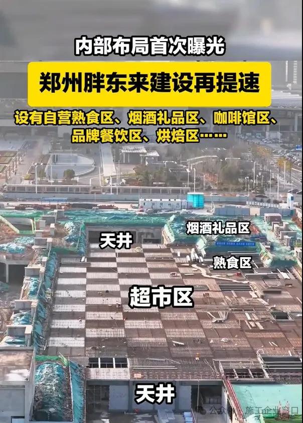 胖东来郑州店的开业时间距离现在已不足5个月,其最新建设进度也备受关注,据当地媒体报道,截至2025年12月25日,位于郑州东站东广场的胖东来项目工地,除了极少数位置尚未铺完,整个建筑主体已经基本完成了“封顶”,内部的硬装施工同步开始,布局情况也已经明晰——“北超市、南商业”。