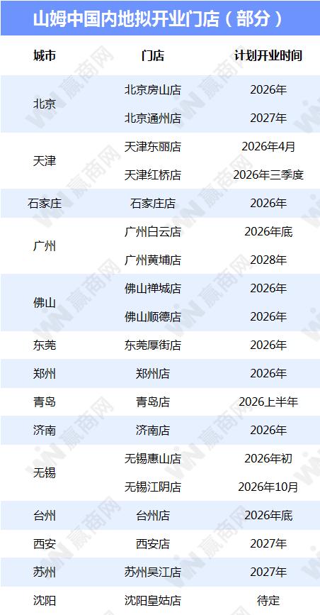这也意味着,山姆中国的扩张仍在加速。据悉,2025年后,山姆计划每年平均新开8-10家门店。此外,2026年拓店重心将转向华北,并持续提升下沉市场的覆盖能力。据赢商网不完全统计,2026年,山姆中国有14家门店计划开业。
