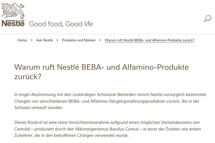 因发现产品原料存在质量问题,近期雀巢多款婴配粉启动了全球范围的预防性召回,食品安全危机引发大批消费者恐慌,波及集团旗下品牌包括能恩、惠氏、BEBA等。