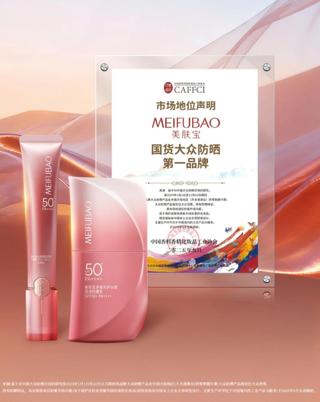 例如2025年9月,美肤宝获中国香精香料化妆品工业协会(CAME)认证为“国货大众防晒第一品牌”。