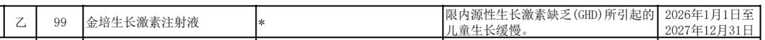 其中有两款长效生长激素产品被纳入,即长春高新(000661.SZ)旗下金赛药业的金培生长激素注射液(金赛增)和特宝生物(688278.SH)的怡培生长激素注射液(益佩生)。金赛增早在2014年就已上市,而益佩生则于2025年5月获批,为1类新药。