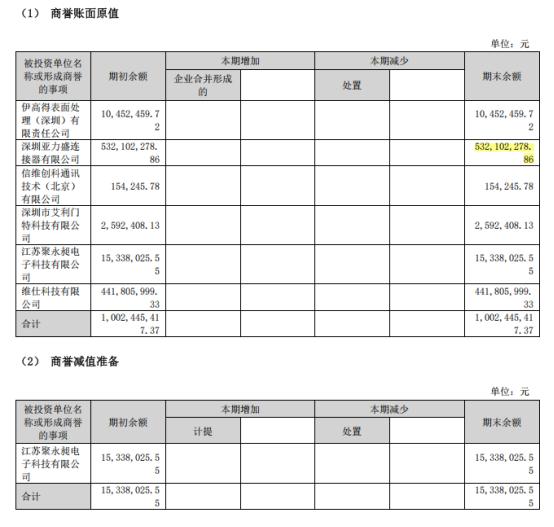 2014年8月至2015年,信维通信又收购了亚力盛,借此切入汽车连接器业务。但这次付出的代价也很高:收购溢价率高达730.66%,形成的商誉高达5.32亿元。