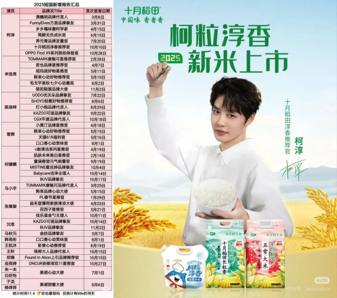 2025年代言市场的出人意料之处,不止于这些头部。很多我们忽视的、以为掉队的小花,也突然恢复了往年的商务水平。
