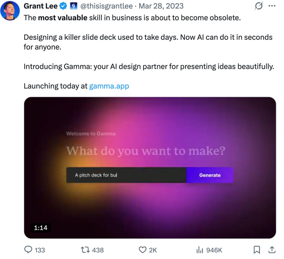 推文爆了,Gamma 完成了冷启动,这也成为它增长的起点。