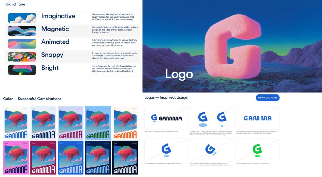 为了进一步产生规模化的增长复利,Gamma 还做了一件在初创 AI 应用公司里相当罕见的事——品牌重塑。