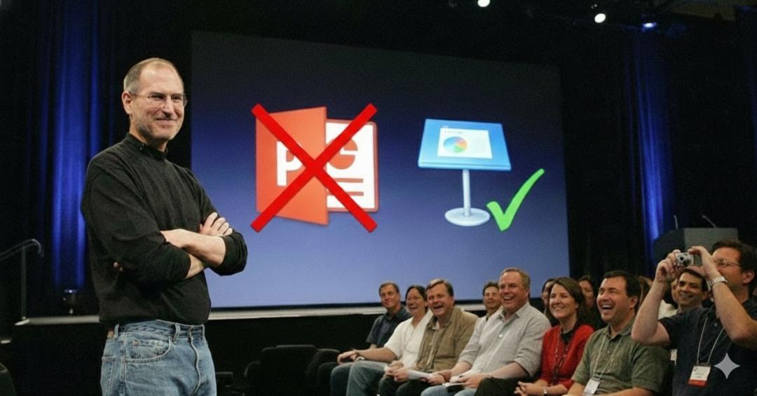 因为乔布斯不用 PPT,才有了 Keynote 图片由 AI 生成