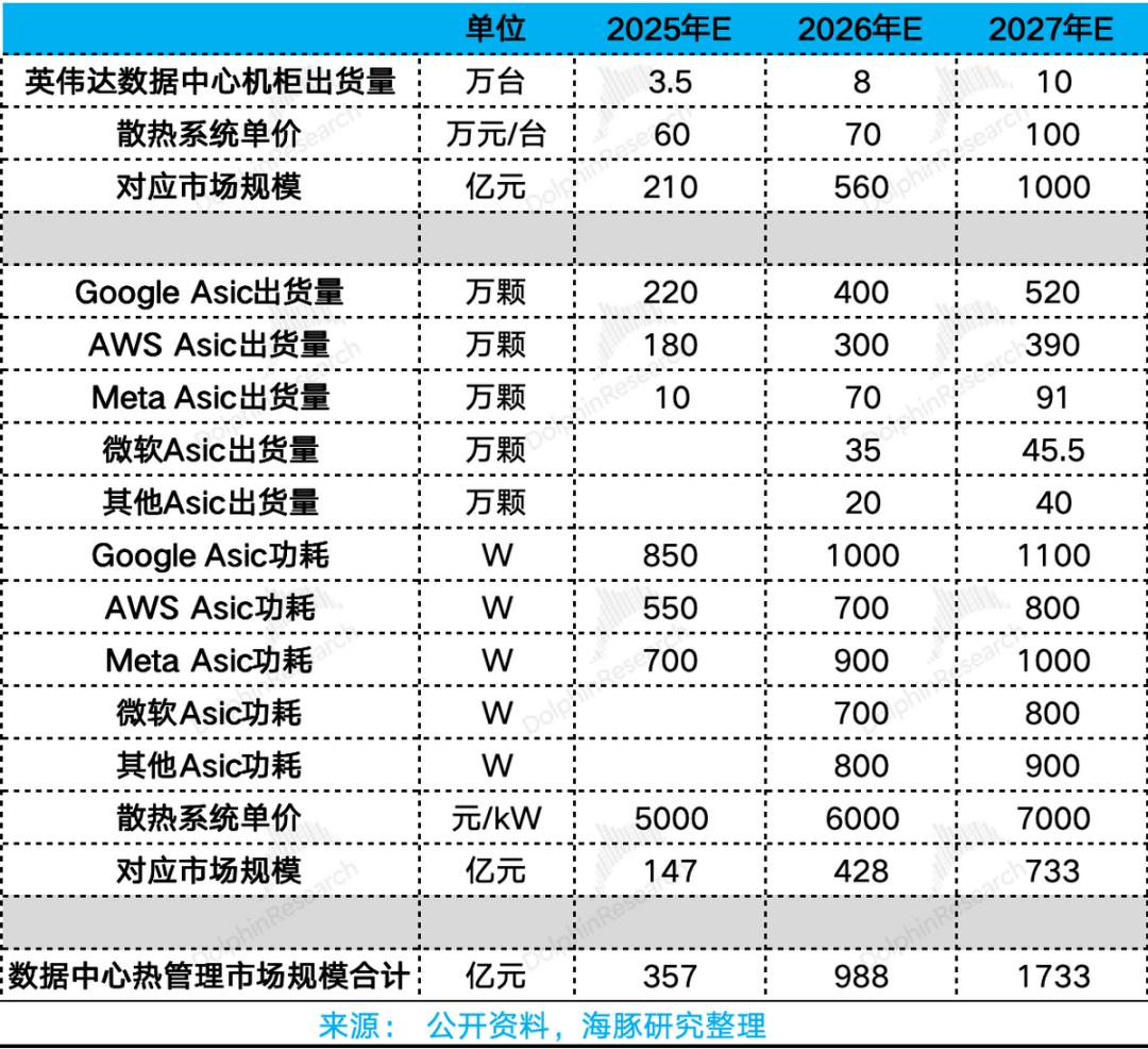 在上文中我们已经讨论过,英伟达逐渐将数据中心热管理过渡到全液冷方案;另外,对于Asic阵营,数据中心热管理方案也在向液冷过渡,例如Google第七代自研AI芯片(TPU V7)预计就将采用全液冷架构。