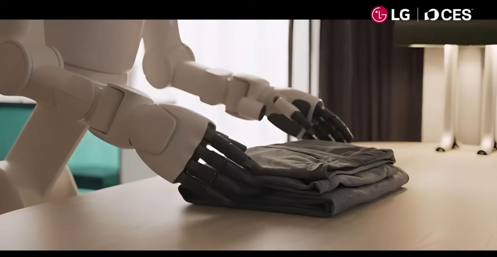 以前的机器人是“瞎子摸象”,给它一块布,它可能分不清是抹布还是衬衫。但CLOiD不一样,LG号称给它喂了数万小时的家庭任务数据进行训练,在官方视频演示中,它可以轻松完成洗衣服-晾干-叠衣服的完整流程。