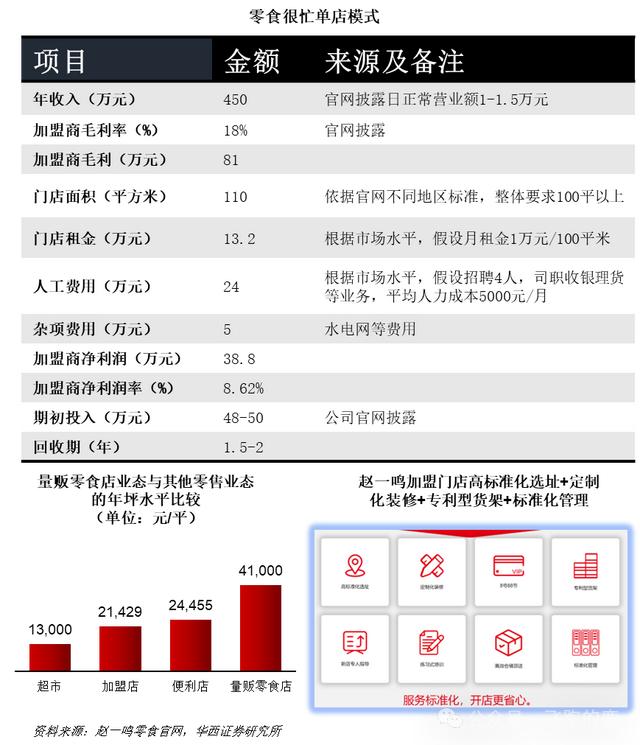 商业模式的创新与痛点的解决,只是量贩零食店发展的前提和基础。让加盟商能够赚到钱,才使得这一商业模式具备了快速复制的可能,也吸引了全社会投资人和资金参与到这场渠道革命中,这一切都要从其单店模型说起。
