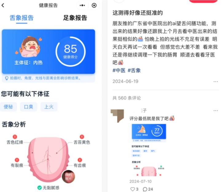 最近,关于AI看病问诊的功能越来越多,甚至集成到了豆包、元宝deepseek等通用大模型里,不少网友用其来看舌苔、看脸色,推断自己的健康状况。社交平台上,晒AI诊断结果、分享自愈经验的帖子屡见不鲜,信任在一次次“说中症状”中悄然累积。