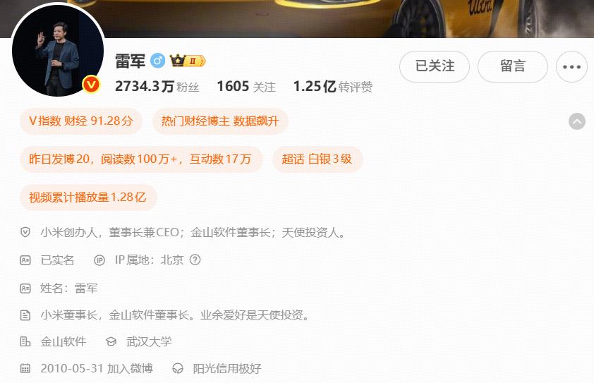 这也不难理解,对于雷军这样既能带流量、又能拉投放的标志性IP,平台自然会主动保护。毕竟,雷军和小米,早就成了微博的“流量压舱石”。