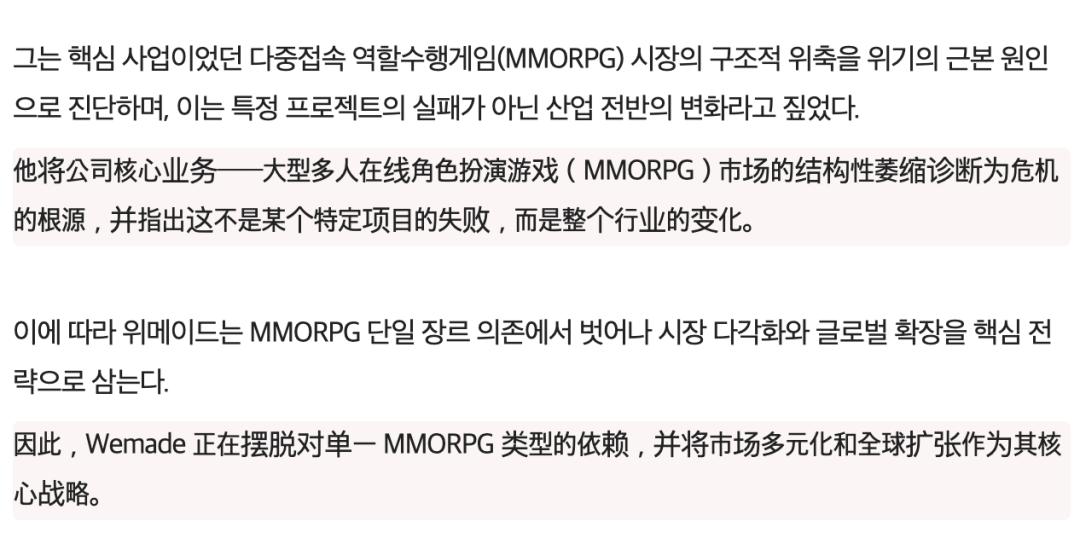 哪怕是 MMORPG 的根据地韩国,也诞生了“MMORPG 是行业陷阱”的观念。2026 年 1 月 2 日,当年用一部《热血传奇》征服中国市场的娱美德也低了头,CEO 朴冠浩在新年致辞中表示,娱美德的困境,在于核心业务——MMORPG 市场的结构性萎缩。