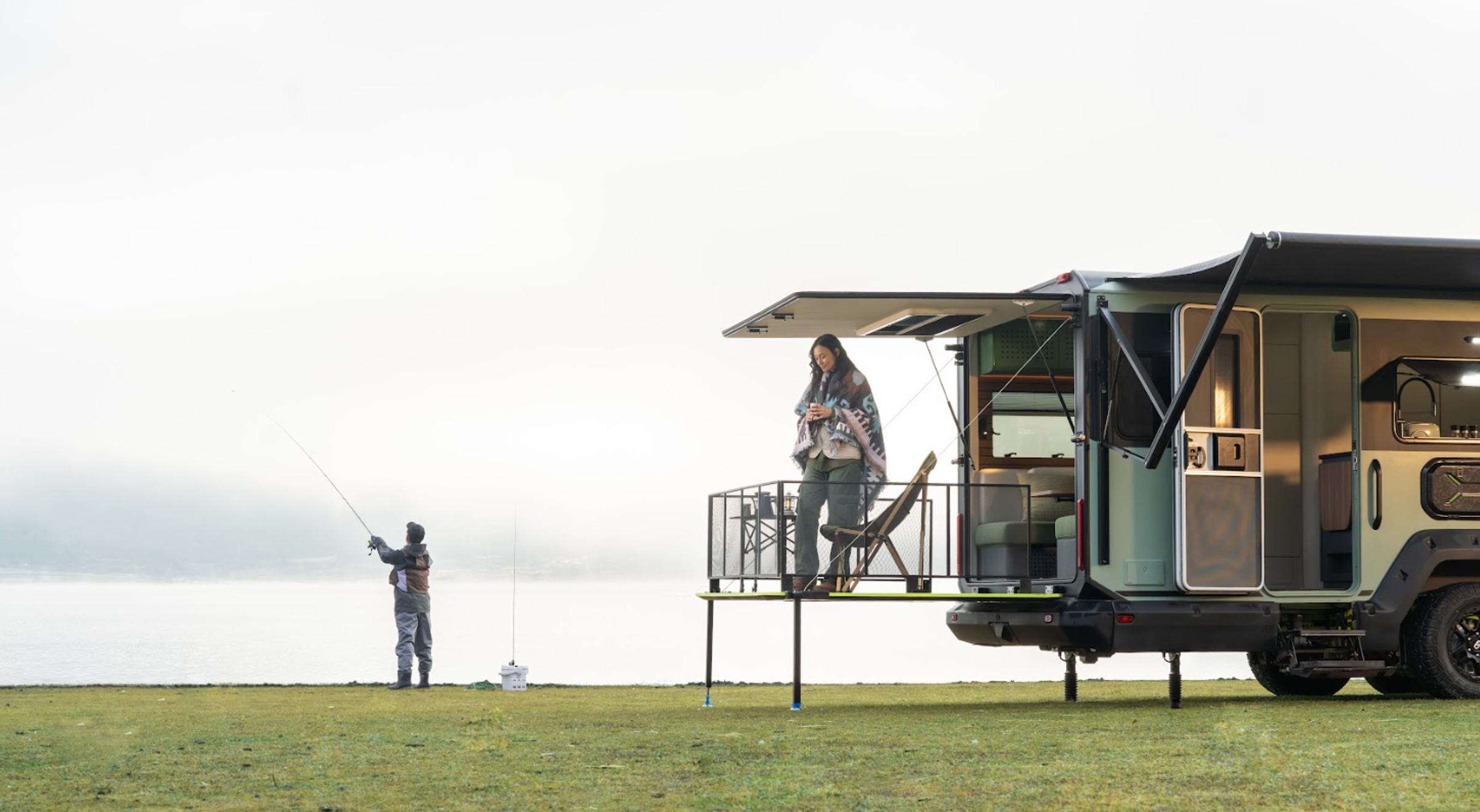 在今年1月CES上,松鼠动力的首款产品Evotrex-PG5正式对外发布。这也是业内第一款自发电式拖挂房车,主打离网、户外自由的不妥协的生活方式,售价12万美元起。