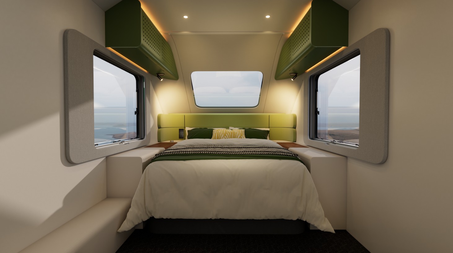 萧昂:整体设计上,我们围绕“森系风”营造了一种身处自然、却又有在家中的舒适感。比如床的设计灵感,就来源于“人类洞穴”的概念,外观有强烈的包裹感,可以为身处野外的用户提供安全感,隔绝外部噪音。