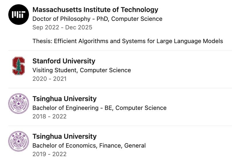 2022年,肖光烜加入MIT攻读博士学位,导师为韩松(Song Han)教授。