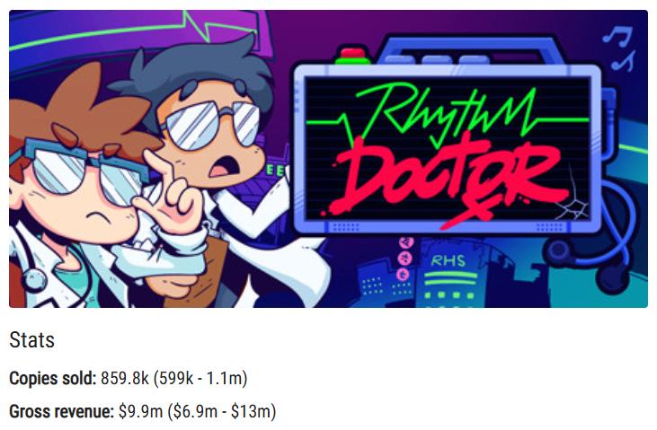距离《节奏医生》正式版发售刚好过了1个月,这款游戏在Steam的预估销量已经增长到86万套,总流水接近1000万美金,换算过来差不多是7000万元。