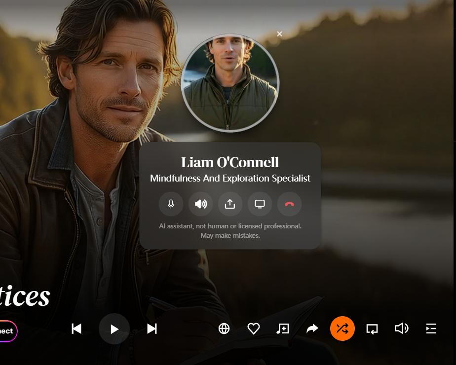 这种“人格化+场景化”的产品思路,也被Napster拓展到了有声书、音乐疗愈板块,其中的核心内容并非音频本身,而是疗愈师、正念导师、金融顾问、家庭顾问等专业人士的数字分身。用户不仅可以欣赏其作品,也可以与这些 AI 角色进行通话或对话,获取情绪疗愈、生活建议,甚至延伸至财务规划、饮食决策和个人成长路径。