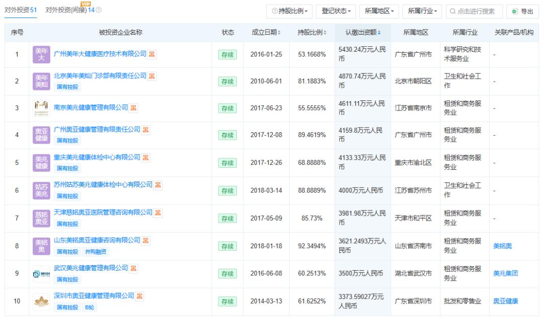 美鸿投资由美年健康多位原股东、高管共同成立,主要投资医疗大健康产业上下游及成长型初创公司,目前参与投资公司包括德适生物、西湖维泰、扬奇医芯、优加健康、领创医谷、甲贝生物等。