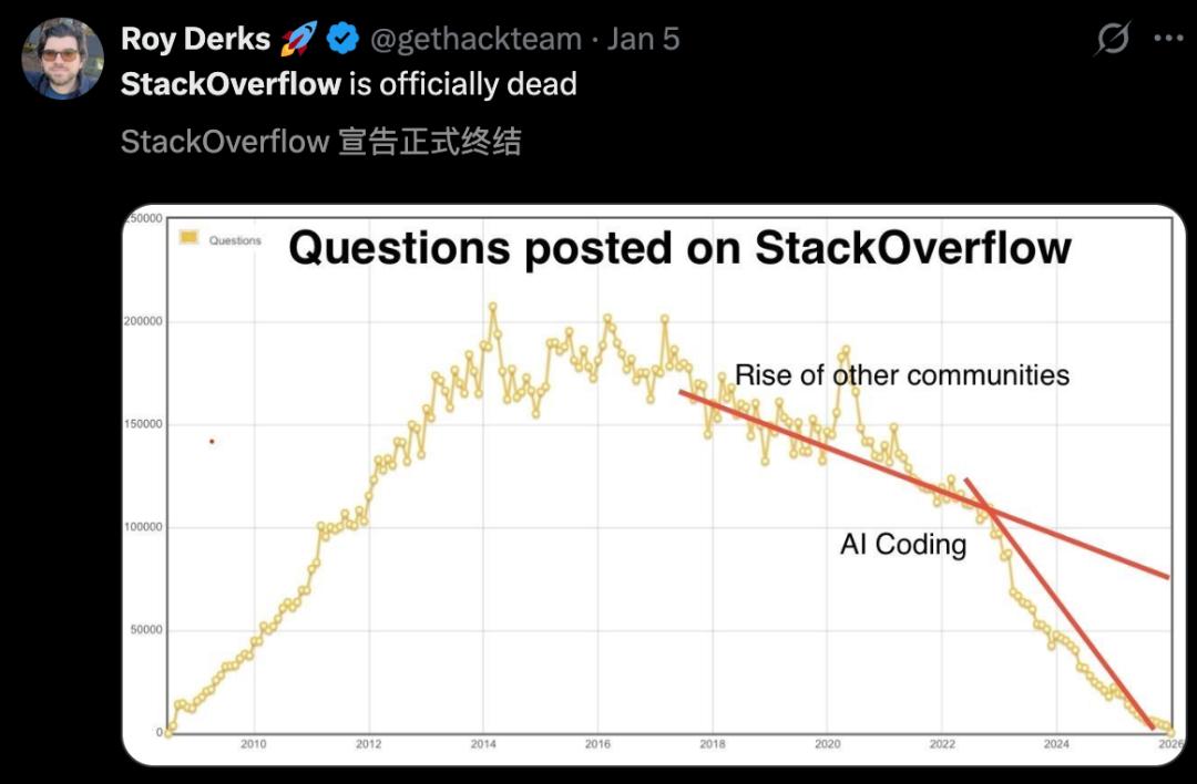 全网都在感慨,那个曾经红极一时,全球最大的编程社区问答网站,为何几乎无人问津?