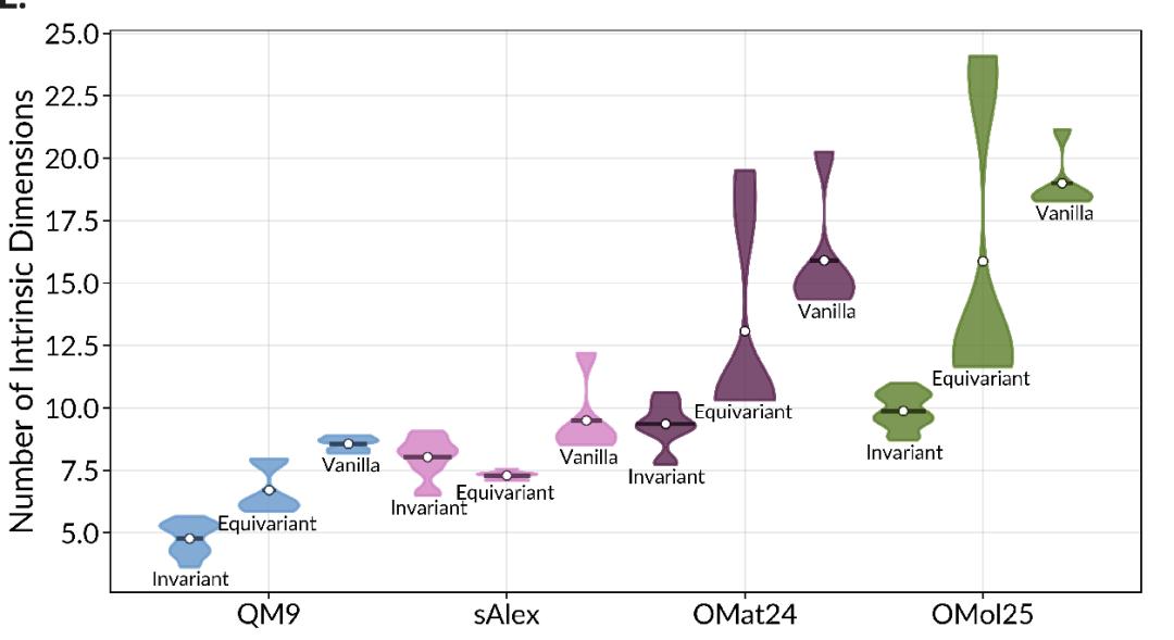 尽管这些AI的架构千差万别,但它们在处理同一批分子数据时,其特征空间的复杂度竟然压缩到了一个非常窄的范围。