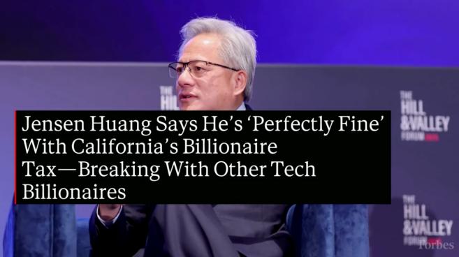 黄仁勋在接受电视台采访的时候被问到“加州新富人税”的问题,满不在乎地说:“我们选择在硅谷,他们想征收什么税,我们就交什么税。”