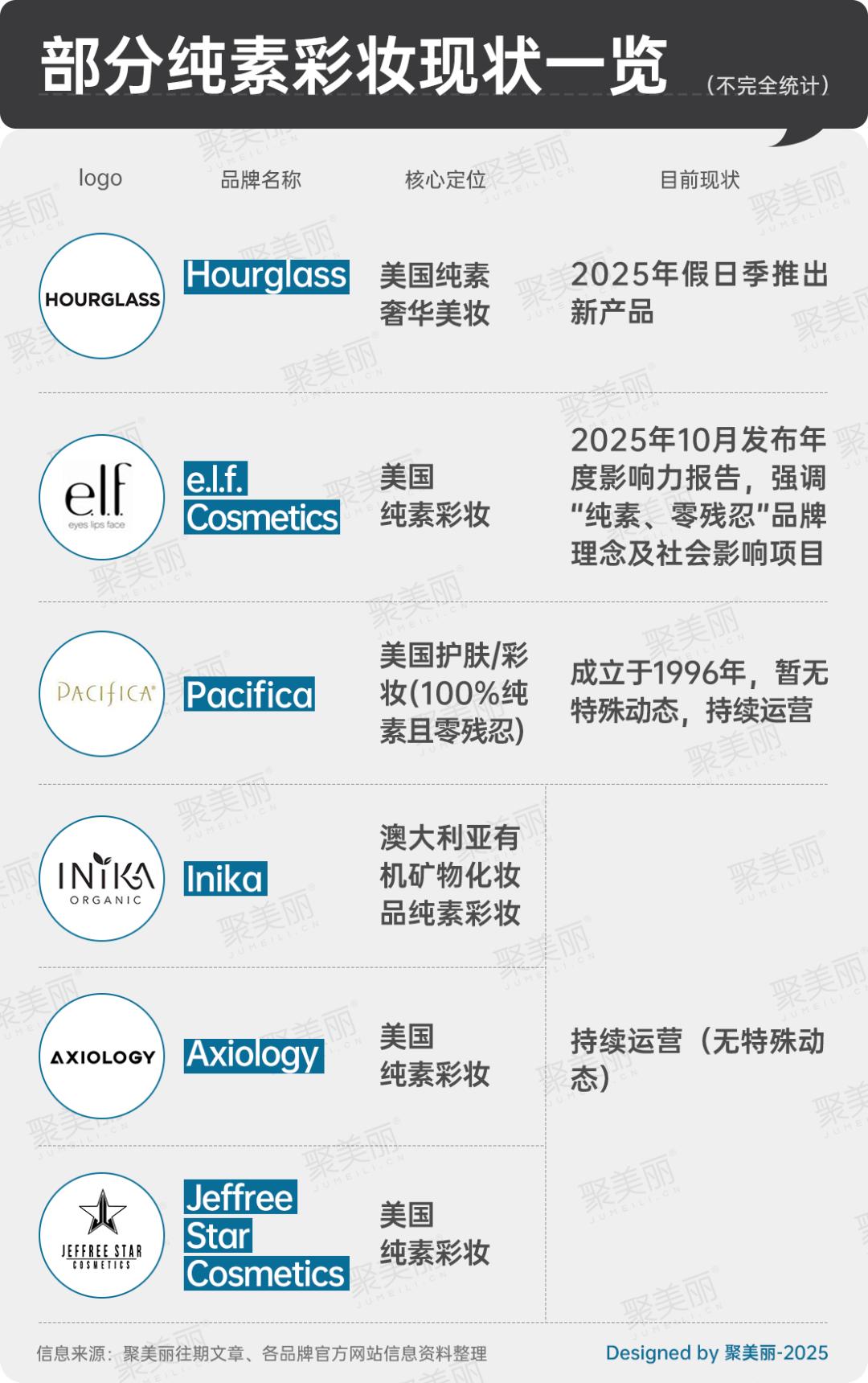 尽管有品牌退出,但聚美丽梳理发现,仍有一部分纯净彩妆品牌在2025年通过融资、标准制定、营销合作或专注细分领域,巩固或提升了自身市场地位。