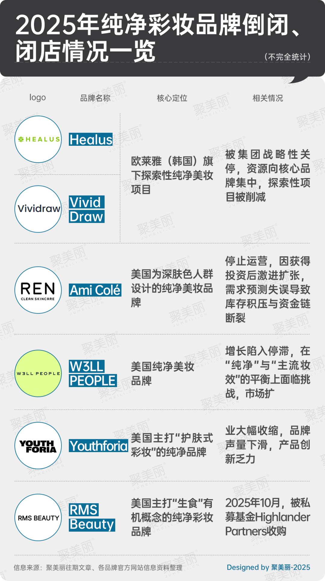 聚美丽梳理发现,在2025年,有多个曾被寄予厚望的纯净护肤品牌停下了脚步。且值得注意的是,这些品牌不乏背景显赫的案例,它们或背靠大型美妆集团,或曾被誉为细分市场典范,但如今却都有着退出市场或收缩战线的共同结局。