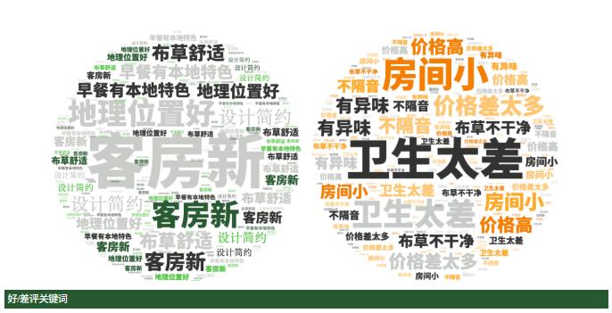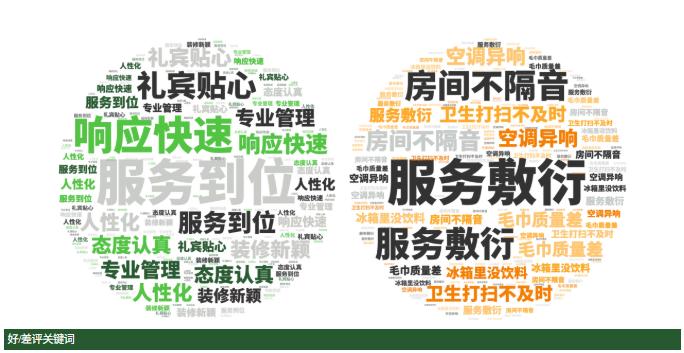 点评指数:点评指数平均得分为131.32,整体指数呈小幅下跌,好评维度平均是差评维度的1.65倍。好评关键词主要是服务贴心、响应快速、床品舒适等,差评主要集中在服务冷漠、设备老化、灯光暗等问题。