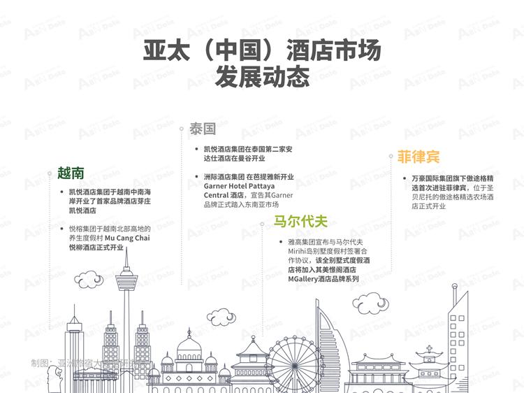 在泰国,凯悦酒店集团宣布曼谷安达仕酒店正式开业。酒店坐落于曼谷核心的超大型一体化街区One Bangkok内,是继安达仕芭堤雅中天海滩酒店后,该品牌在泰国的第二家酒店。洲际酒店集团于芭提雅也新开业 了Garner Hotel Pattaya Central 酒店,宣告其 Garner 品牌正式踏入东南亚市场。