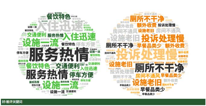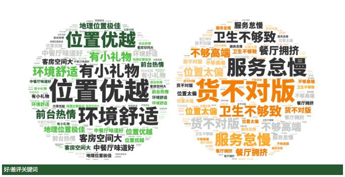 点评指数:中端酒店点评指数平均得分达85.8分,指数环比有较为明显的下滑,且未有300分品牌出现。好评维度平均是差评维度的1.4倍。好评关键词主要是中端酒店的客房新、地理位置好、早餐好吃等方面。差评关键词主要集中在卫生差、没有合理补偿、服务敷衍等方面。