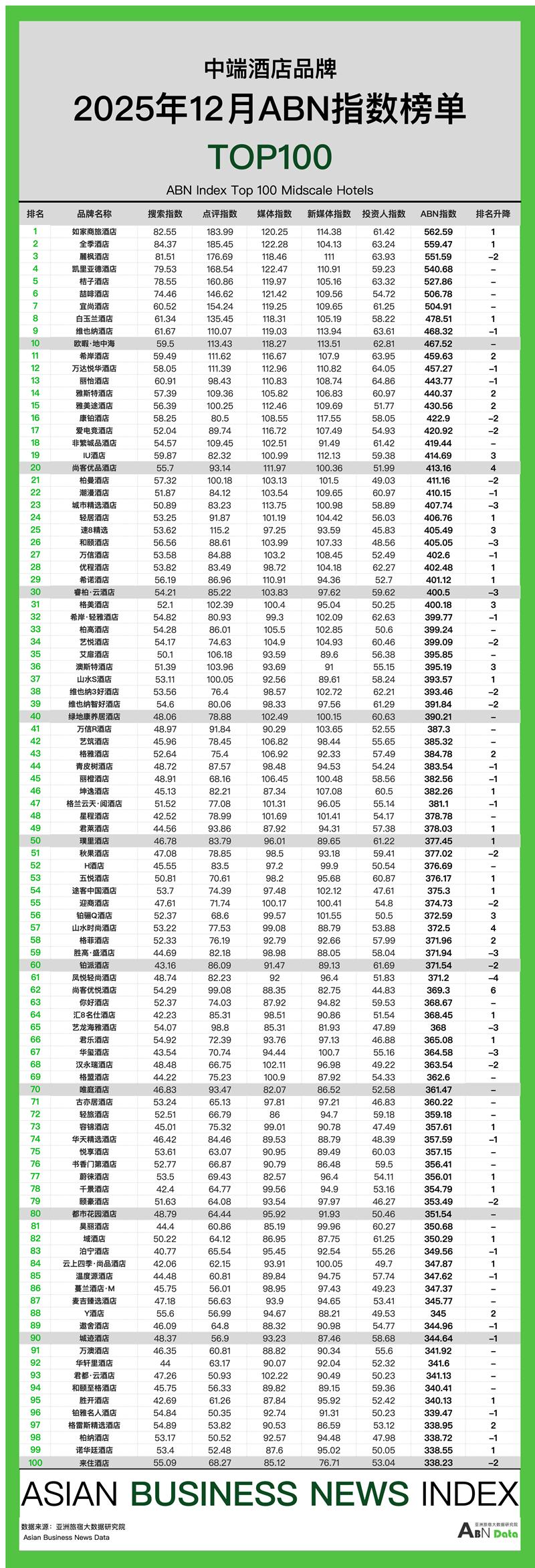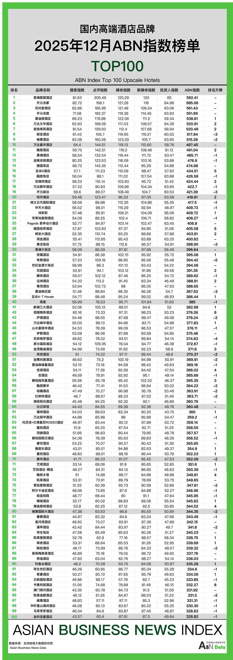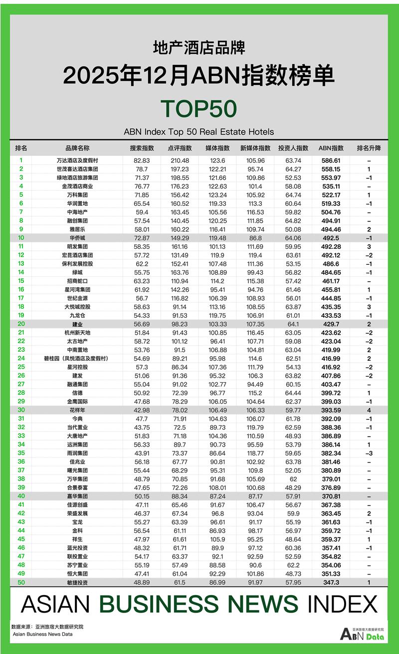 12月酒店榜单发布及分析