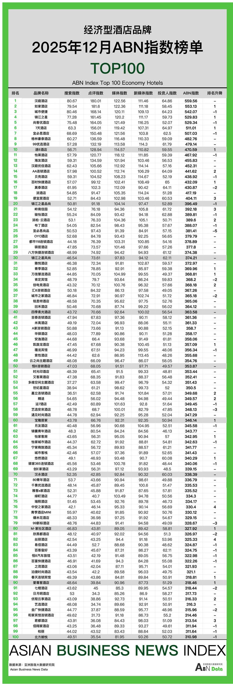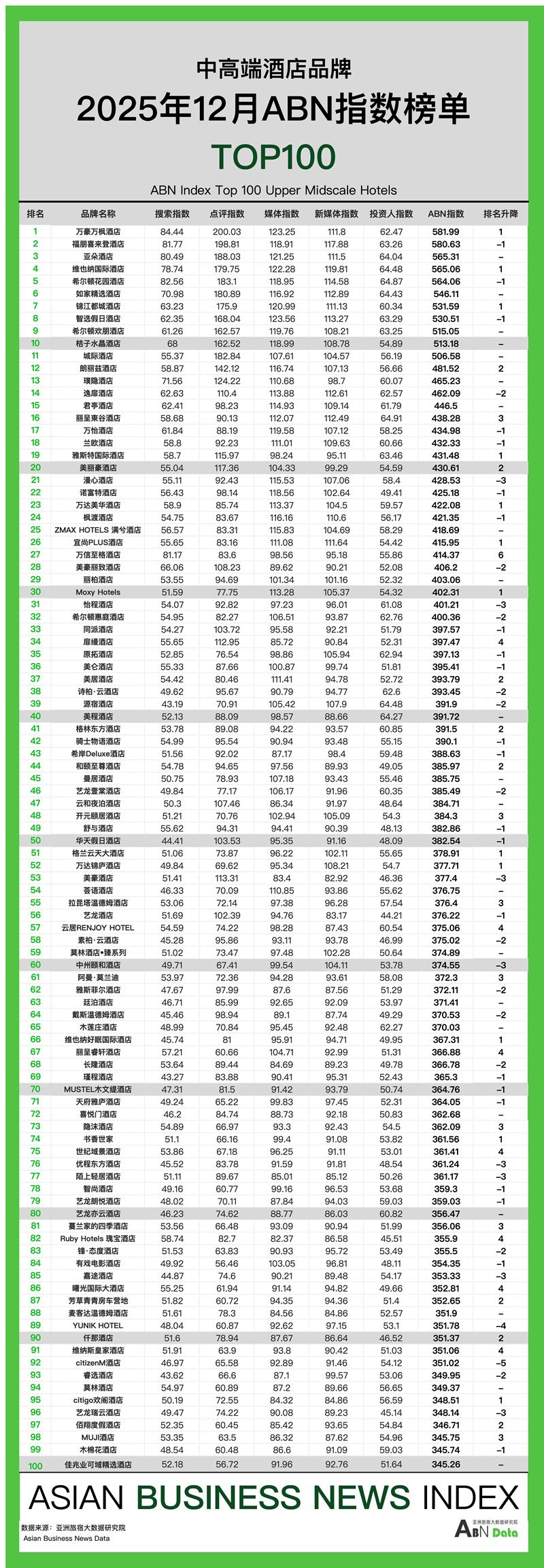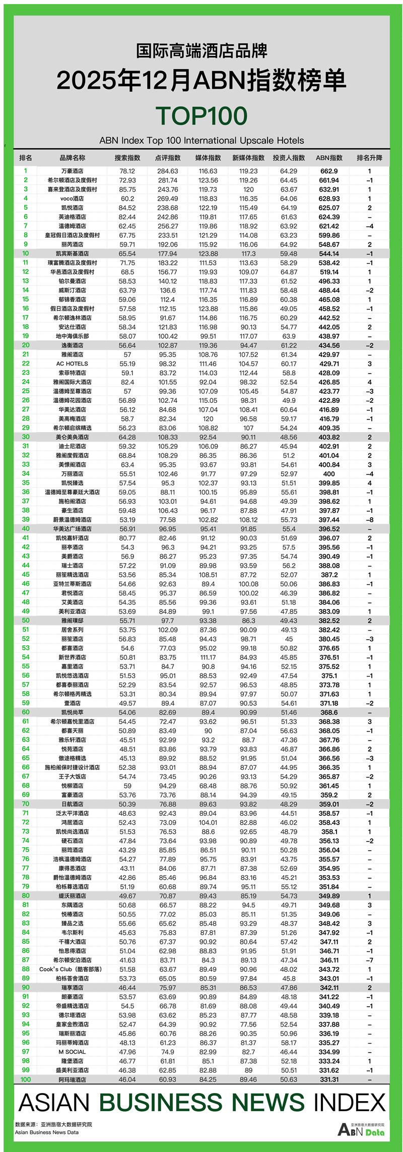 12月酒店榜单发布及分析