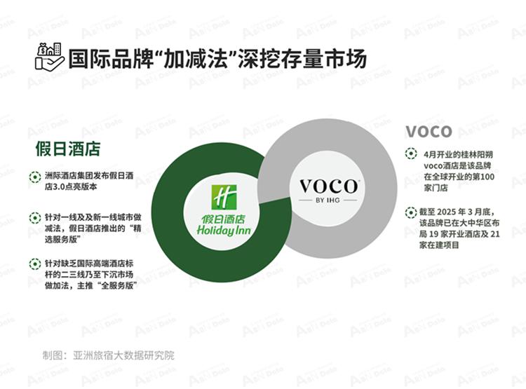 目前假日酒店在大中华区运营酒店超过150家,另有超过百家处于筹建阶段;在全球近300家在建假日酒店中,约三分之一布局在大中华区。而洲际旗下另一家专注于高端酒店焕新的品牌voco在2025年也达成了其重要的里程碑阶段,4月开业的桂林阳朔voco酒店是该品牌在全球开业的第100家门店。截至 2025 年 3 月底,该品牌已在大中华区布局 19 家开业酒店及 21 家在建项目,覆盖上海、广州、西安、南京等一线及新一线城市,以及三亚、桂林、西双版纳、千岛湖等多个热门旅游目的地。