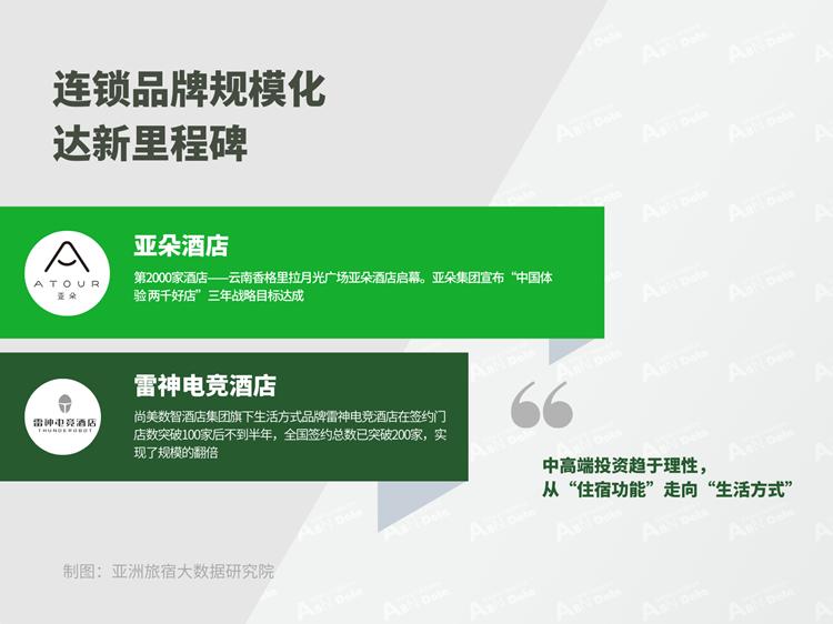 连锁品牌规模化达新里程碑|12月,中高端酒店以一份份规模翻倍增长的成绩正式收官2025年。12月31日,亚朵集团宣布“中国体验 两千好店”三年战略目标达成。第2000家酒店——云南香格里拉月光广场亚朵酒店启幕,标志着亚朵集团在规模扩容与品牌升级上迈入了全新阶段。截至目前,亚朵集团已构建起涵盖酒店、零售场景,覆盖超1亿品质生活会员的多元品牌矩阵。